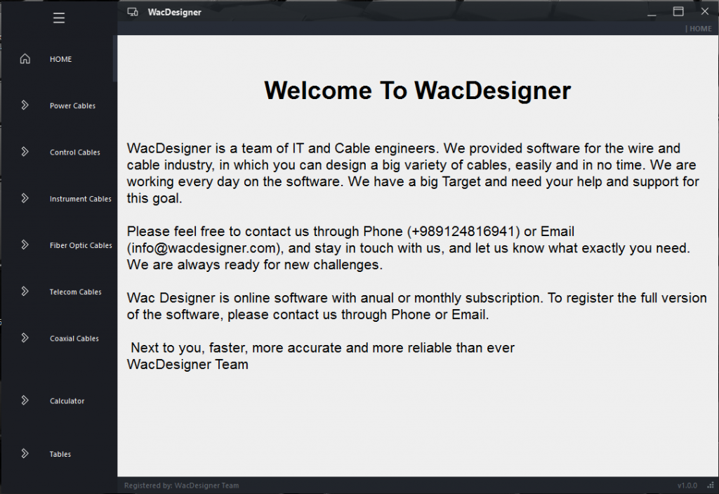 WacDesigner is a software for the wire and cable industry. A team of cable engineers and IT engineers are working on this software every day to enhance its features and modules. We appreciate any suggestions and offers and would fulfil all your needs. In this regard we started WacDesigner for the wire and cable industry and we will continue empowering it every day. You do not need any more to spend hours designing a cable and calculate its weights and dimensions. Using WacDesigner you can design any kind of cable in no time. Our collection is not complete, however it will be much stronger in the near future.