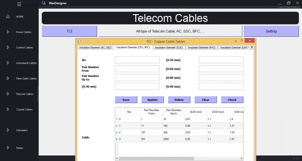 In this section, you can design all type of copper telecommunication cables including AC, SSC, CUC, CFC, BFC, and also cables with other layers.